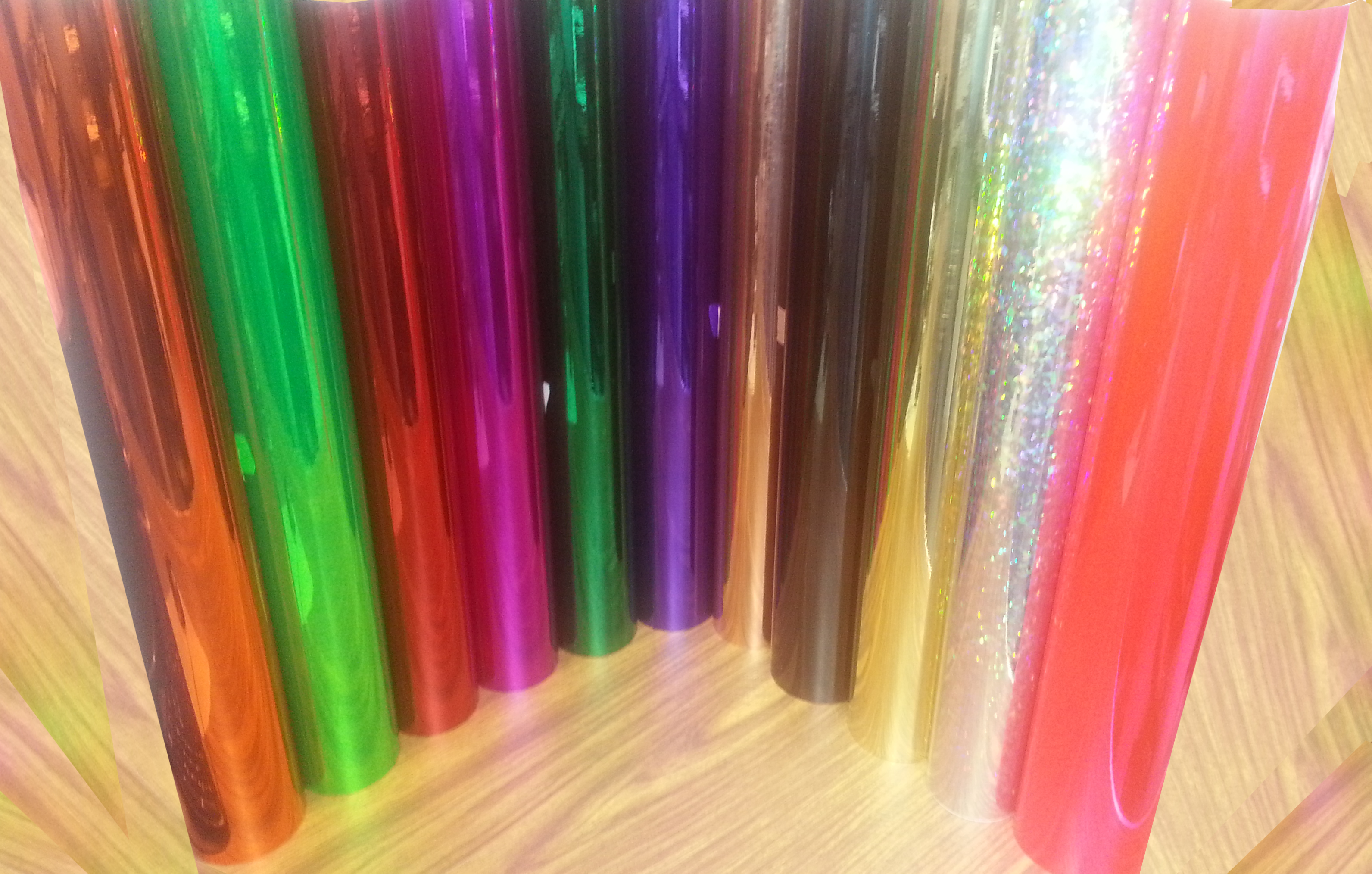 From Left to Right Orange # 27 Fluorescent Green # 43 Cherry Red # 30 Raspberry # 34 Emerald Green # 40 Amethyst # 33 Copper # 29 Gun Metal #50 Gold # 23 Fantasy Film Crystal Fluorescent Pink # 32 |